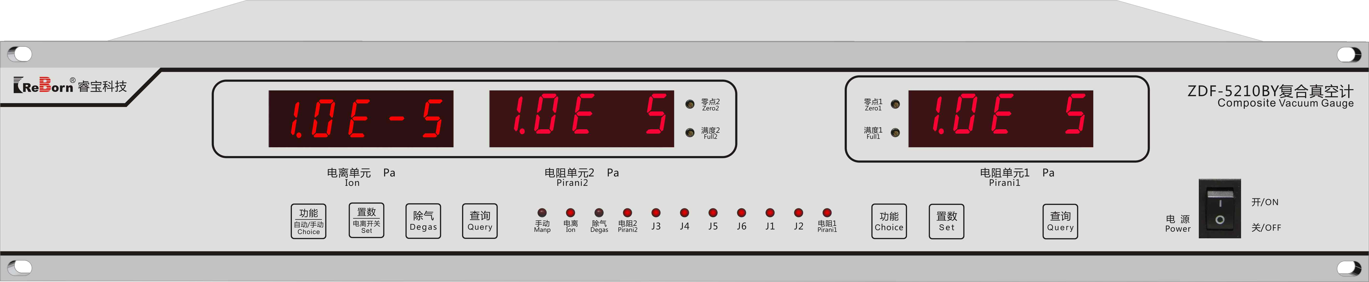 该系列复合真空计是由一路或者二路皮拉尼电阻真空计(ZJ-52T)和一路热阴极电离真空计(ZJ-10)组合而成。该系列复合真空计包含ZDF-5210、ZDF-5210BY;